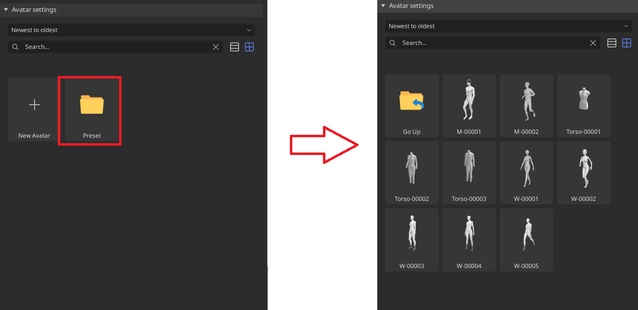 - Change the sorting and thumnail of the custom avatar presets